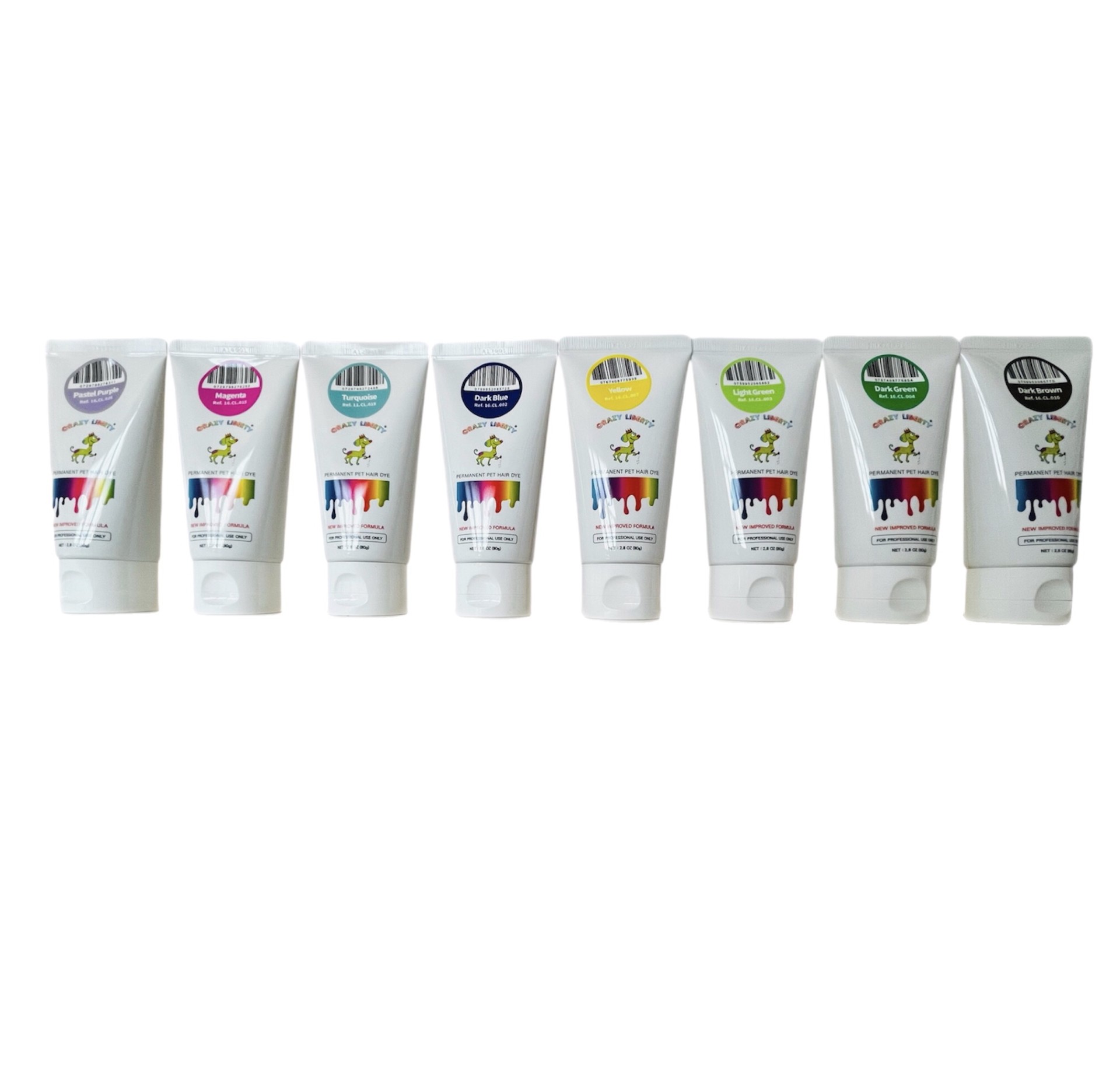 CRAZY LIBERTY Pets Hair dye, Permanent Dog Hair Dye, 8 Tubes * 2.8 Fl. Oz. Non-Toxic Pet hair Dye for Creative Grooming, Pet Safe Hair Dyes last more 16 washes.